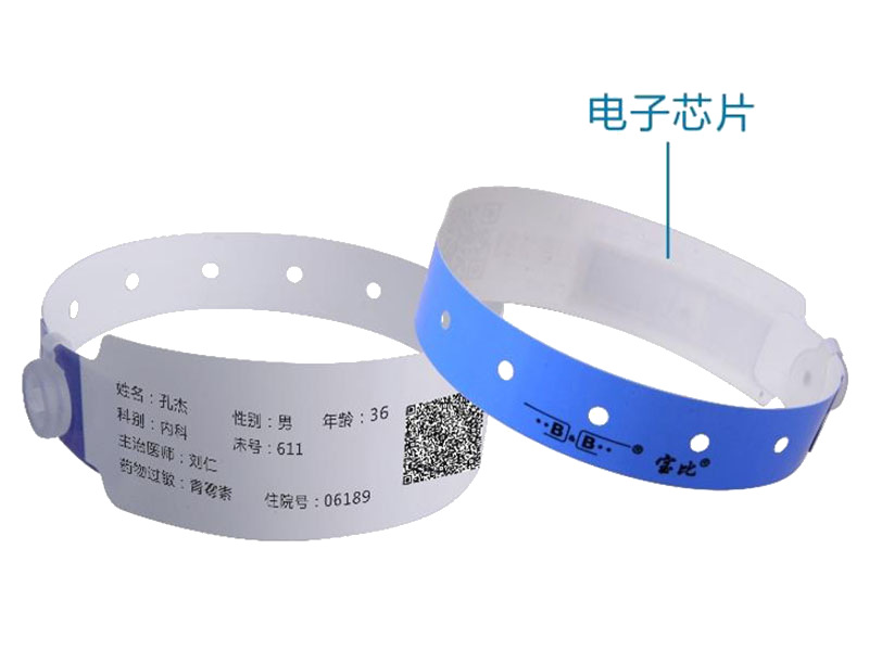 条码打印腕带需要近距离单个读取信息,信息容量少。RFID医用智能腕带的出现,在医疗信息化进展中,除了进行可靠的身份确认,芯片信息容量更大,患者在院期间整个治疗护理过程也实现了数字化。